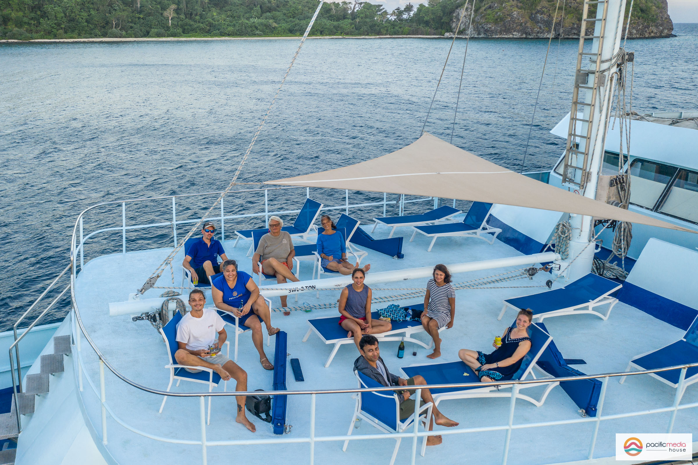 Enjoying a sunset drink on the deck of the NAI’A.