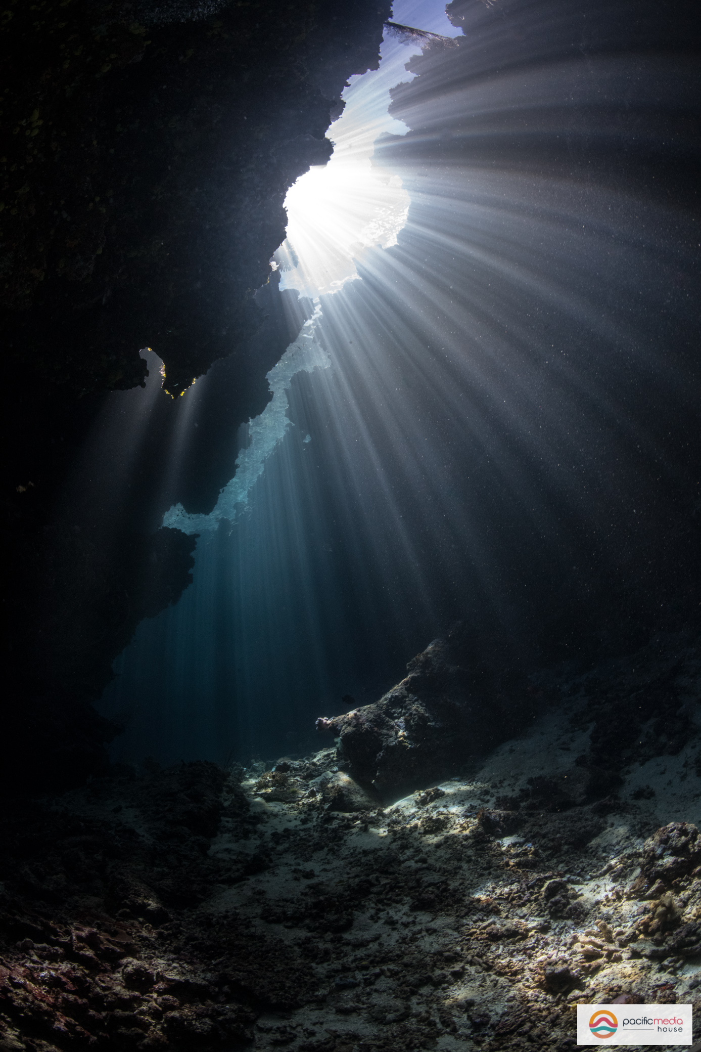 Scott, one of the two cruise directors of the NAI’A, enjoys a beautiful swim-through.